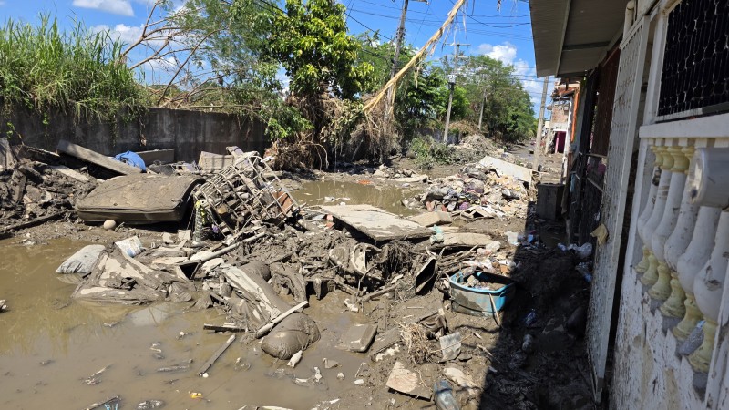 Actualmente, personal de Conagua y del Ejército Mexicano continúa realizando labores de limpieza y remoción de escombros; sin embargo, los trabajos avanzan lentamente y todavía falta mucho por hacer para devolver la normalidad a este sector severamente afectado por la inundación.