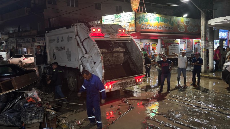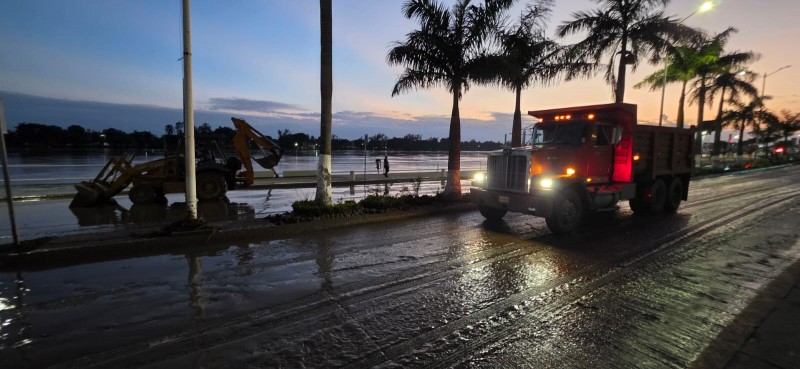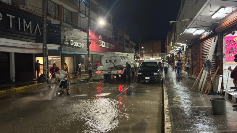 Esta tarde-noche el alcalde Jesús Fomperoza Torres puso en marcha trabajos coordinados de limpieza y saneamiento en el bulevar y calles de la zona centro que fueron afectadas por la crecida del río Tuxpan.