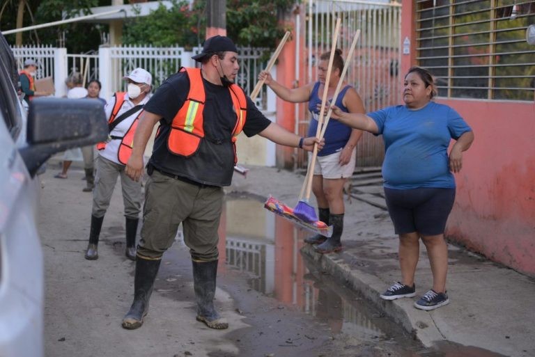 Durante su recorrido, la mandataria supervisó la reinstalación del servicio eléctrico en la colonia 25 de Abril y sectores aledaños, donde cuadrillas de la Comisión Federal de Electricidad restablecen el suministro para cientos de familias. Asimismo la implementación de una brigada especial para la recolección de desechos en la zona centro y comercial, con el objetivo de mantener la limpieza y prevenir riesgos sanitarios.