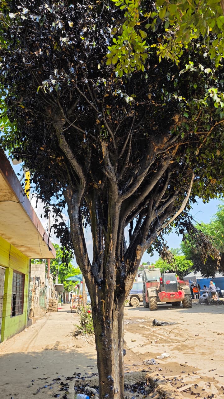 Los vecinos añadieron que no solo las viviendas resultaron dañadas, sino también árboles, banquetas y postes que quedaron impregnados del hidrocarburo, lo que refleja la magnitud del impacto ambiental en la zona. Aseguran que los olores son intensos y que las manchas negras continúan expandiéndose con la humedad.