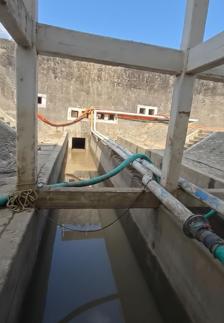 Autoridades explicaron que la disminución del nivel del río, actualmente a 70 centímetros, junto con la gran cantidad de azolve acumulado en el exterior, impidió continuar con el bombeo de manera segura, por lo que fue necesario detener temporalmente el servicio para evitar daños en la infraestructura.