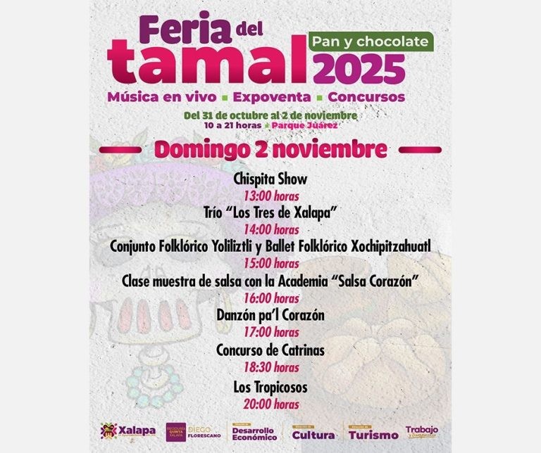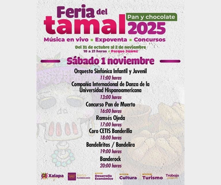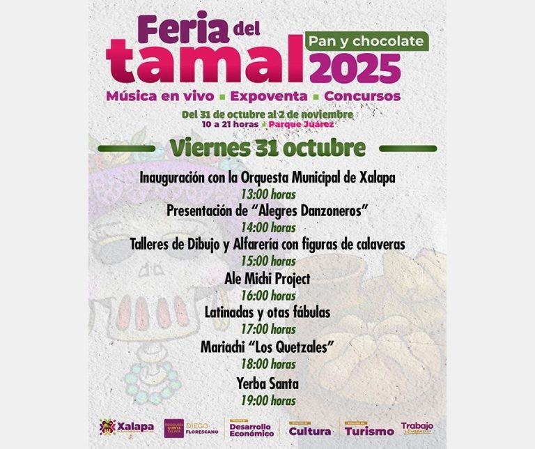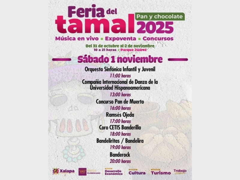 El viernes, desde las 10:00 horas, en el parque Juárez se desarrollará la Feria del Tamal, Pan y Chocolate 2025, con música en vivo, expo-venta y concursos. A las 10:00 horas, en el Muxa, se tendrá el Taller de Creación Literaria de Mercedes Huerta, para jóvenes de 14 a 18 años.