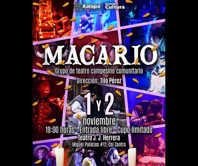 A las 19:00 horas, en el Teatro J. J. Herrera, se presentará la obra Macario, del Grupo de Teatro Campesino Comunitario que dirige Tilo Pérez. Esta función se repite el domingo 2 de noviembre.