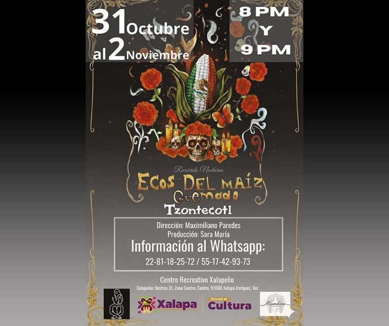 En el CRX, a las 20:00 horas, se presentará “Ecos del maíz quemado Tzontecotl”. Este evento continuará hasta el 2 de noviembre. El sábado, en el parque Juárez, desde las 10:00 horas, seguirá la Feria del Tamal, Pan y Chocolate 2025, con música en vivo.