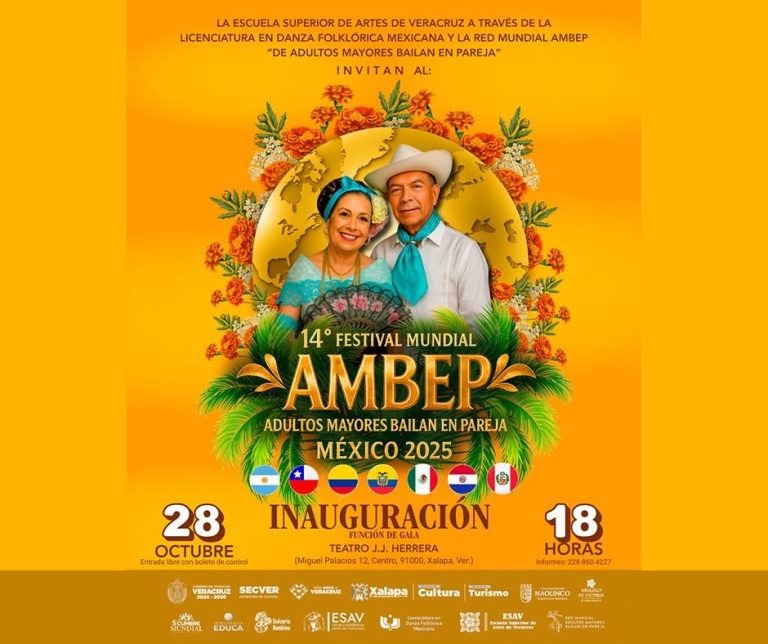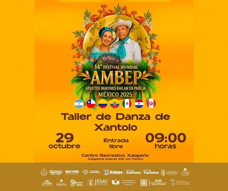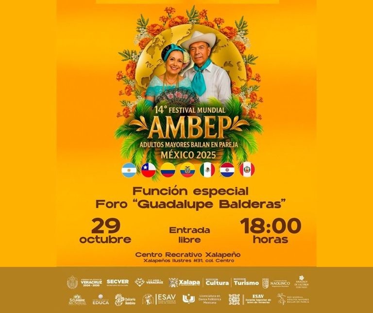 El martes, a las 12:00 horas, en el Centro Recreativo Xalapeño (CRX), se tendrá “Al Andaluz en Veracruz, de la danza Mora al Son Jarocho”. A las 18:00 horas, en el Teatro J. J. Herrera, se inaugurará el Festival Mundial AMBEP, Adultos Mayores que bailan en pareja.