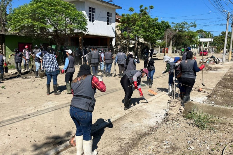 Su labor ha sido esencial para restaurar espacios públicos y distribuir víveres de primera necesidad como despensas, kits de limpieza y alimento para mascotas.