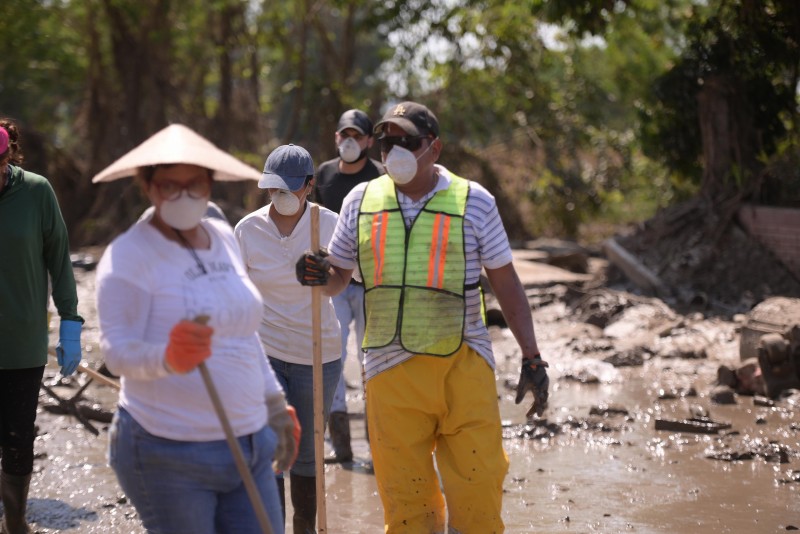 Una cuadrilla de 100 brigadistas de la Secretaria de Trabajo, Previsión Social y Productividad (STPSP), desde hace 15 días, se sumó a las tareas de retiro de lodo, recolección de enseres domésticos dañados y lavado, como parte del proceso de saneamiento integral.