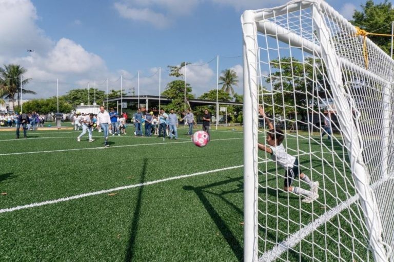 El alcalde de Boca del Río, Juan Manuel Unánue Abascal, entregó una obra más en la Escuela Primaria “Quetzalcóatl”, la cual ya cuenta con cancha nueva de futbol, reafirmando así su compromiso con la educación y el fomento deportivo en el municipio.