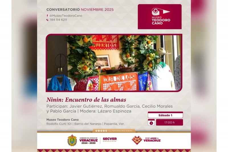 El sábado, a las 17:00 horas, se presentará el conversatorio Ninin: Encuentro de las Almas, un espacio que invitará a la reflexión sobre las tradiciones del Totonacapan y representa un reencuentro con las raíces y con quienes nos precedieron.