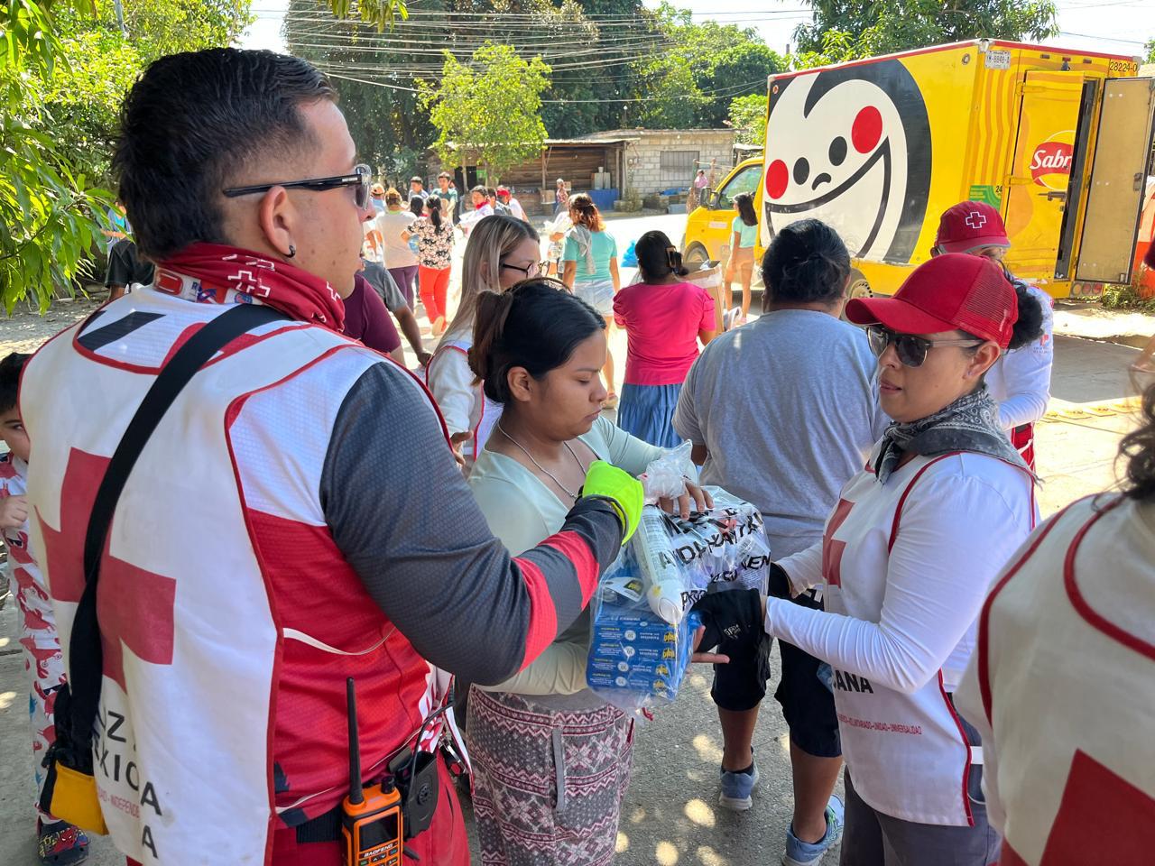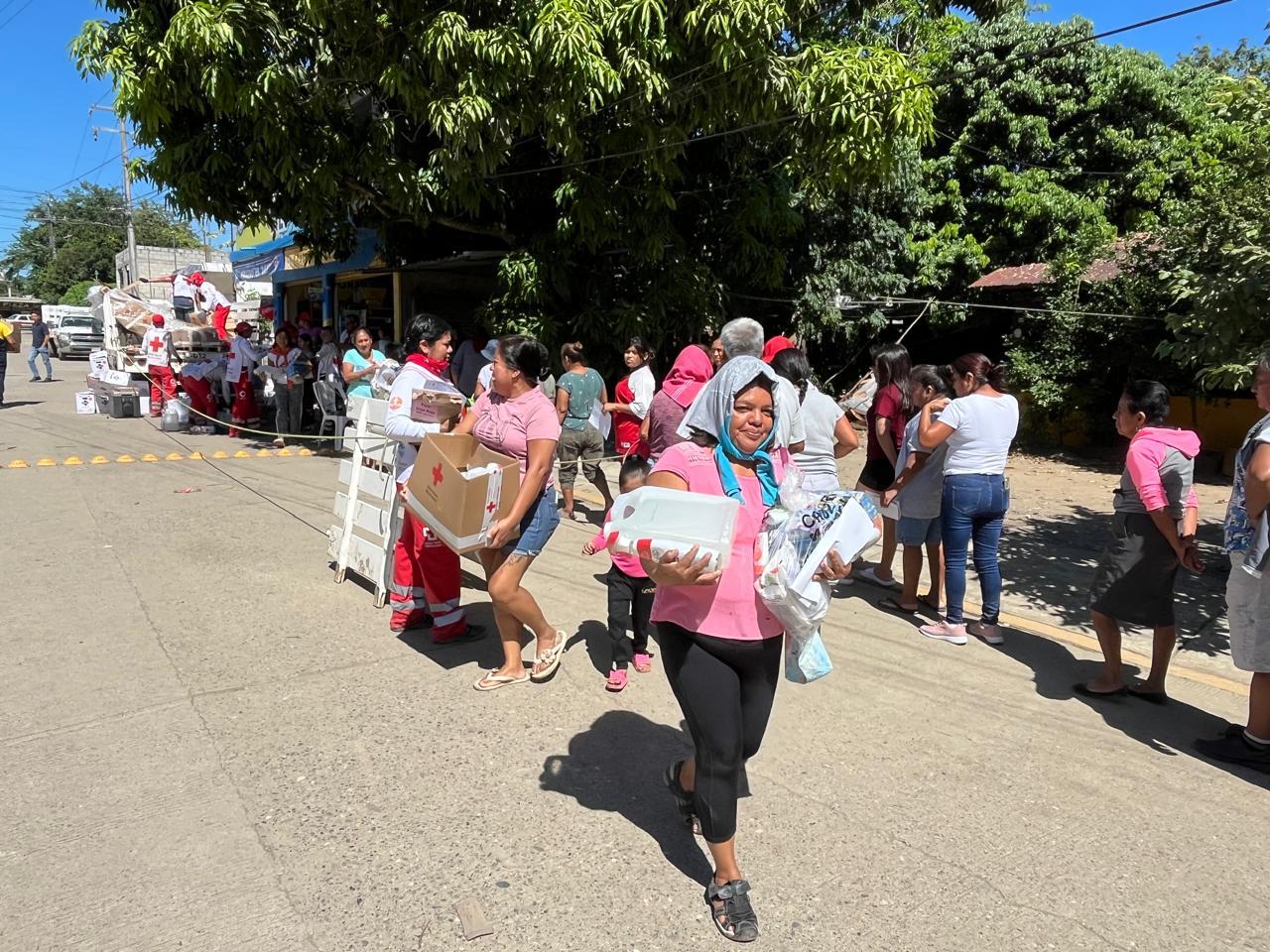 Por la mañana en el sector las Palmas de Zacate Colorado, David Zevadua Escalante, coordinador del área de socorristas de la benemérita institución resaltó que, es la segunda ocasión que se visita y entregan apoyos a damnificados de esta localidad y otras del municipio, donde el principal objetivo es reforzar el aliento de recuperación a cientos de afectados.