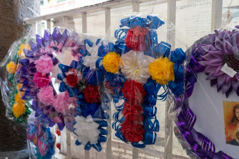 Destacaron los arreglos florales, coronas, cruces y varios más, alusivos a la celebración de Día de Muertos; también se expusieron catrinas elaboradas con cartón.
