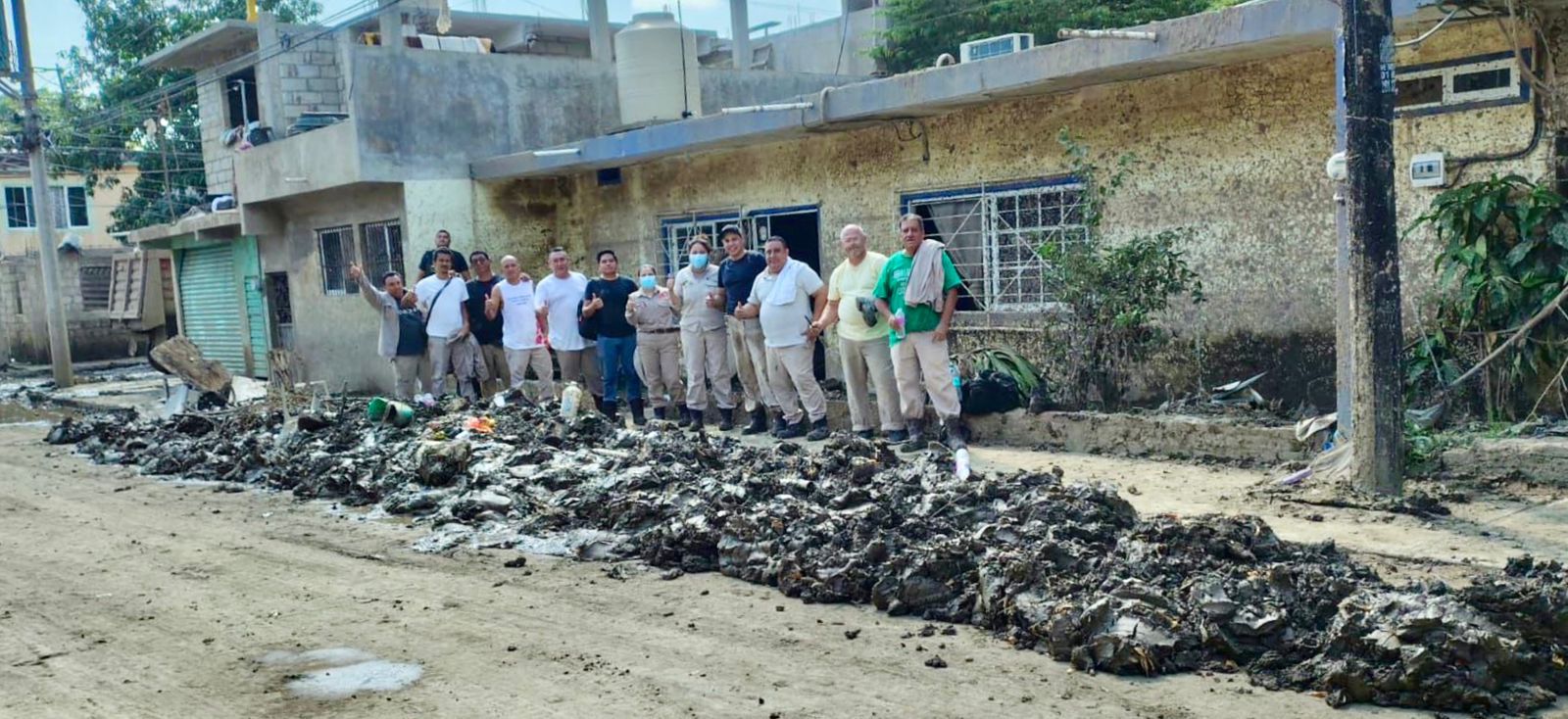 Como parte de las acciones de recuperación en las zonas impactadas por el desbordamiento del río Cazones, Petróleos Mexicanos (Pemex) desplegó 10 cuadrillas integradas por ocho trabajadoras y trabajadores, equipados con herramientas e insumos, para participar en las labores de limpieza y saneamiento de viviendas afectadas en la región norte de Veracruz.