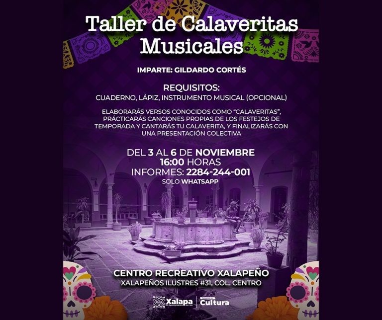 Este lunes, a las 16:00 horas, iniciará el taller de Calaveritas Musicales que imparte Gildardo Cortés en el Centro Recreativo Xalapeño (CRX).