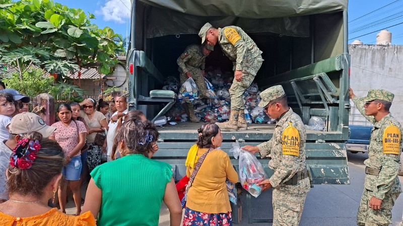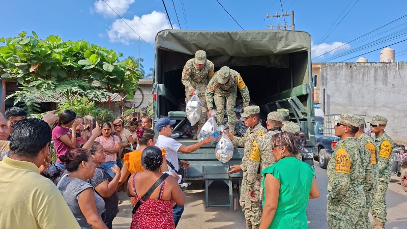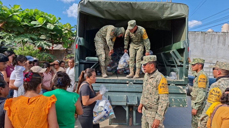 La mañana de este martes, elementos de la Sedena implementaron el Plan DN-III-E, realizando la entrega de despensas y artículos de primera necesidad a las familias damnificadas. Este plan de apoyo humanitario se activó de manera inmediata tras las afectaciones ocasionadas por las lluvias.