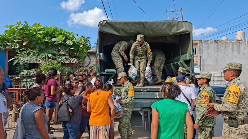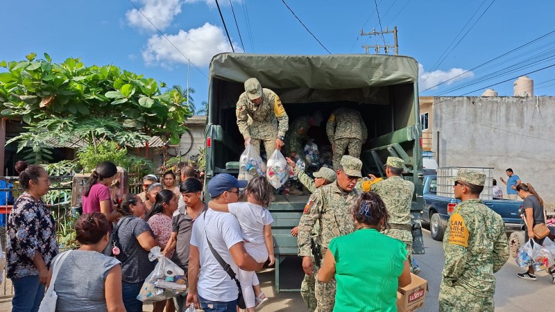 Estas acciones forman parte del compromiso del Gobierno Federal con los damnificados, y están siendo coordinadas y entregadas por personal de la Secretaría de la Defensa Nacional (Sedena) y de las Fuerzas Armadas en este municipio cazoneño.