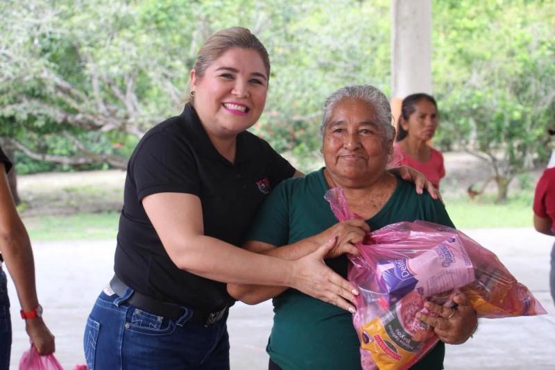 Gómez Ortiz estuvo acompañada del equipo de trabajo del DIF Municipal, quienes de forma coordinada entregan el apoyo que es muy necesario para las familias de sectores y localidades de Tihuatlán.