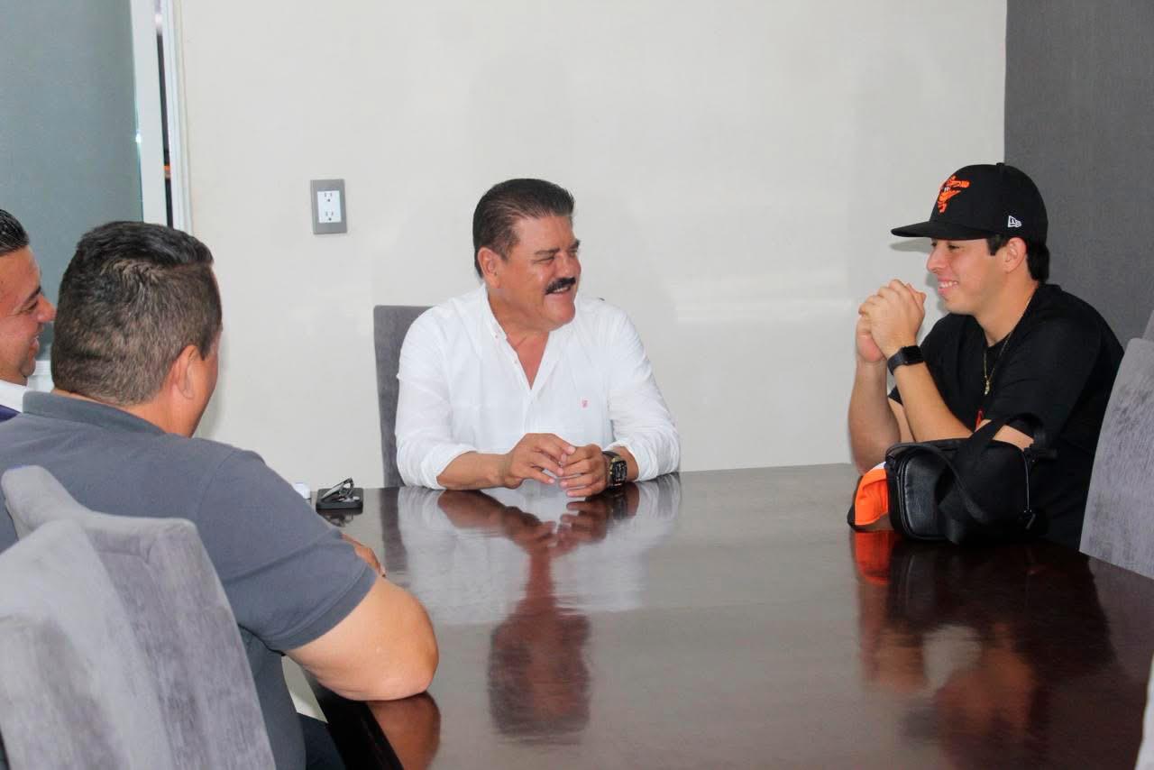 “Hoy tuve el honor de recibir la visita de un gran talento de nuestro municipio: Edgar Benítez Marie, beisbolista profesional tihuateco originario del Km 7 Los Limones del Ejido Lázaro Cárdenas”, señaló el alcalde Leobardo Gómez González.