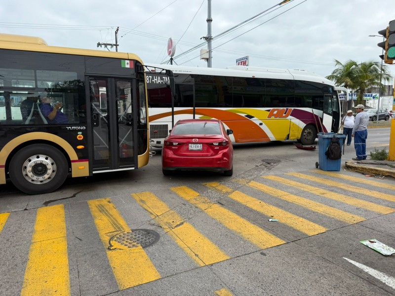 El choque entre un camión Ulua de la ruta Los Robles, con número económico J071, con una motocicleta dejó dos personas lesionadas y derivó en un segundo accidente automovilístico en las calles de Boca del Río.