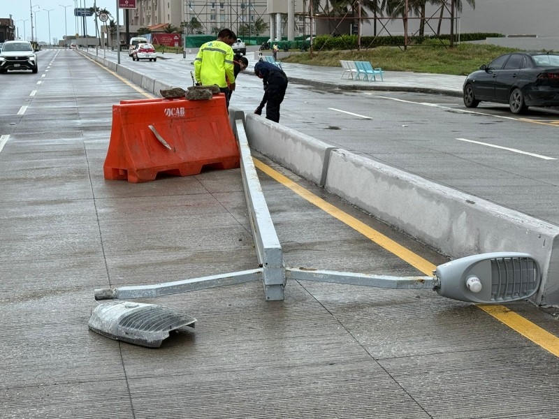 Una luminaria pública cayó sobre uno de los carriles del bulevar Miguel Ávila Camacho, en el municipio de Boca del Río, durante las primeras horas de la mañana de este lunes 10 de noviembre.