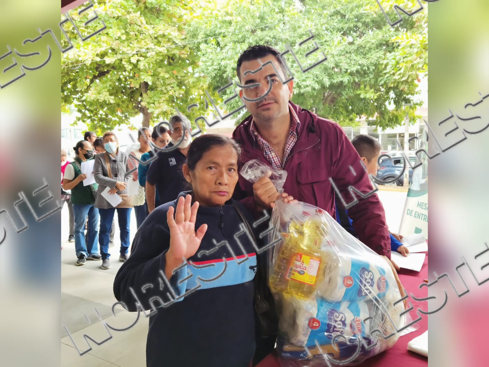 Las familias acudieron desde temprana hora a la pérgola del parque Benito Juárez, donde personal del Ayuntamiento coordinó la entrega de manera ordenada y con el respaldo de servidores públicos municipales, quienes verificaron los listados de beneficiarios previamente censados.