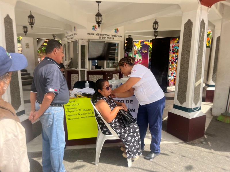 En el módulo instalado, personal de la Secretaría de Salud se encuentra inmunizando contra la influenza estacional, hepatitis B para adultos, hepatitis A para niños de un año, neumococo para adultos mayores de 60 años y tétanos, como parte de las acciones preventivas de la temporada.