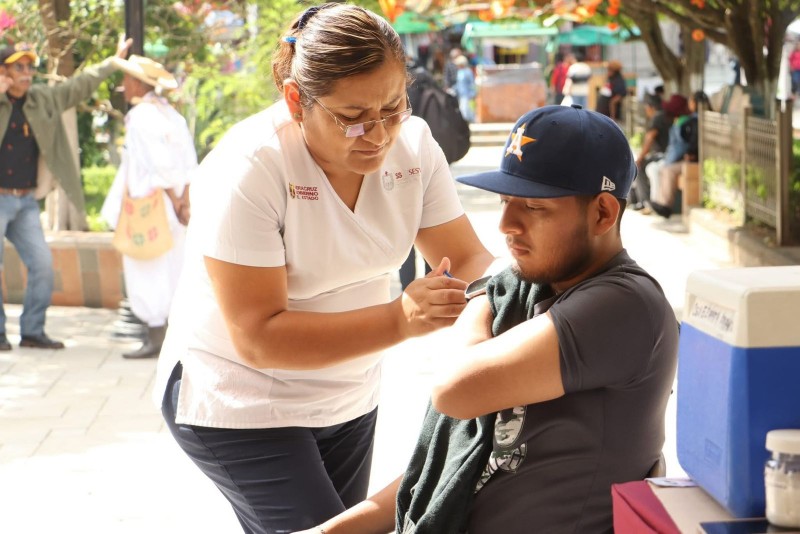 Personal del Centro de Salud Emiliano Zapata lleva a cabo una jornada de vacunación en el parque Dr. Israel C. Téllez, donde se están aplicando diversas dosis de manera gratuita para proteger a la población contra diferentes enfermedades.