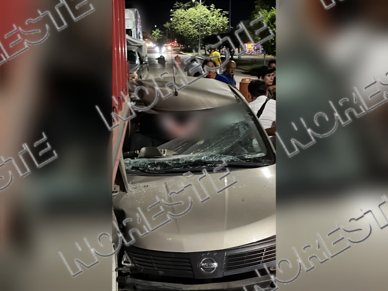 De acuerdo con los primeros reportes, el conductor presuntamente manejaba bajo los efectos del alcohol y a exceso de velocidad, lo que ocasionó que perdiera el control de su unidad y terminara impactándose contra la parte trasera de un vehículo tipo tortón, quedando prácticamente debajo de la pesada unidad.