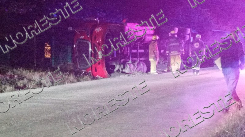 Una intensa movilización de cuerpos de emergencia se registró durante la noche de este jueves, luego de que un autotanque cargado con gas volcó sobre la carretera Tuxpan–Cazones, a la altura del kilómetro 12, cerca de la comunidad La Esperanza.