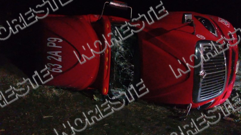 De acuerdo con los primeros reportes, la pesada unidad, propiedad de la empresa Silza, terminó recostada sobre uno de sus costados tras perder estabilidad mientras circulaba con dirección a Cazones. El conductor sobrevivió al percance y, pese a lo aparatoso del accidente, solo presentó dolor en uno de los brazos, situación que no ameritó traslado urgente.