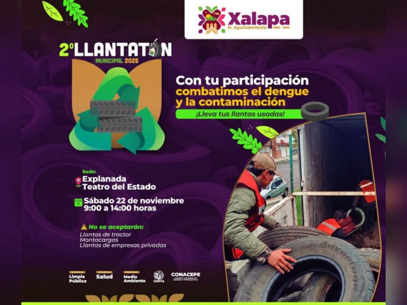 Con el objetivo de contribuir a la eliminación de los criaderos del mosco transmisor del dengue, zika y chikungunya, y promover el manejo adecuado de residuos, el Ayuntamiento de Xalapa invita al segundo Llantatón Municipal 2025.