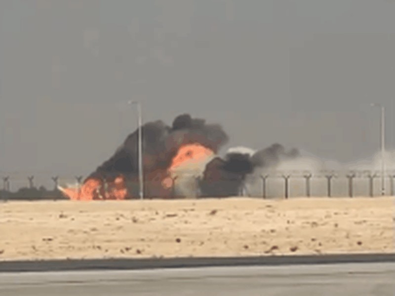 Un humo negro se elevó sobre el Aeropuerto Internacional Al Maktoum en Dubai World Central mientras la multitud observaba la exhibición aérea. Las sirenas de los vehículos de emergencias sonaban tras el siniestro.