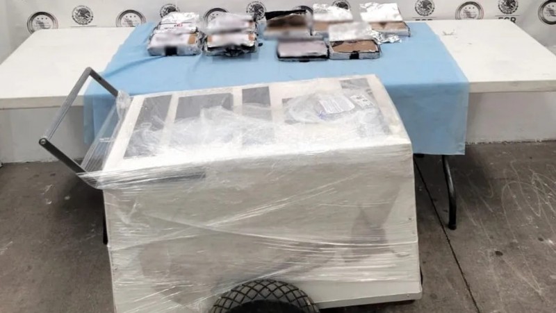 Agentes federales y estatales decomisaron cocaína oculta en un carrito de helados en un operativo interinstitucional localizado en una empresa de paquetería en el municipio de Tarímbaro, Michoacán.