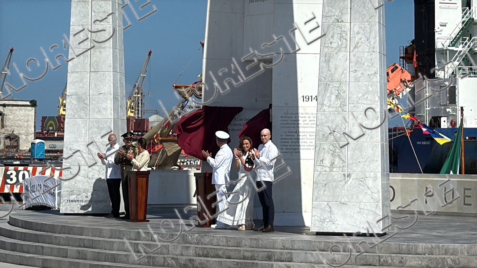 Como tercer punto en su agenda, la Presidenta develó una placa conmemorativa en la plaza del Heroísmo Veracruzano, en honor a los defensores de Veracruz, durante los intentos de invasión.