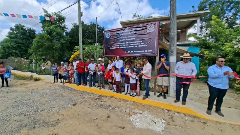 El Ayuntamiento Constitucional de Cazones, encabezado por el alcalde Miguel Ángel Uribe Toral, inauguró una importante obra en la comunidad de El Sauce, consistente en la construcción de guarniciones y banquetas en la calle principal de esta localidad.