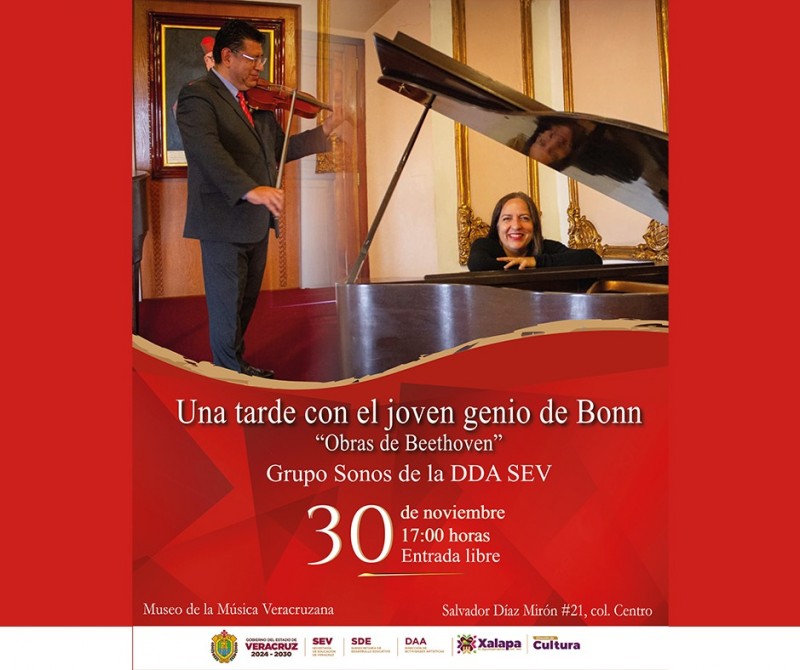 Una hora más tarde, en el Museo de la Música Veracruzana, se ofrecerá el recital de violín y piano de estudiantes de las maestras Raquel Paraíso, Rodrigo Gama y María Eugenia de la Parra.