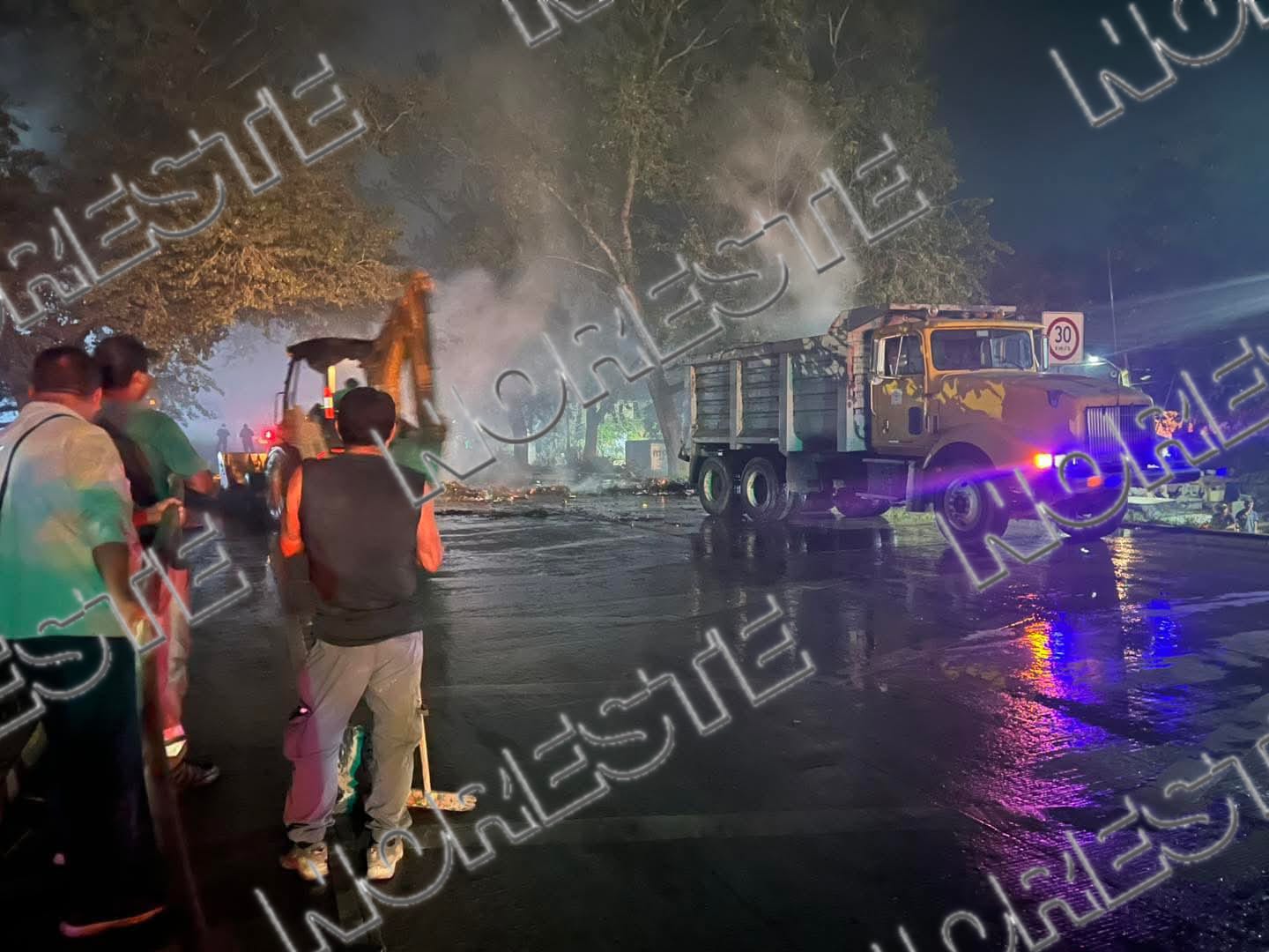 Elementos de la Guardia Nacional, Policía Municipal, Protección Civil y el cuerpo de Bomberos acudieron de inmediato para asegurar el área y sofocar las llamas. Personal de Limpia Pública también llegó con un camión de volteo, aunque las llamas ya habían consumido parte de los residuos, por lo que fue necesaria la intervención de maquinaria pesada para retirar los restos y despejar la vía.