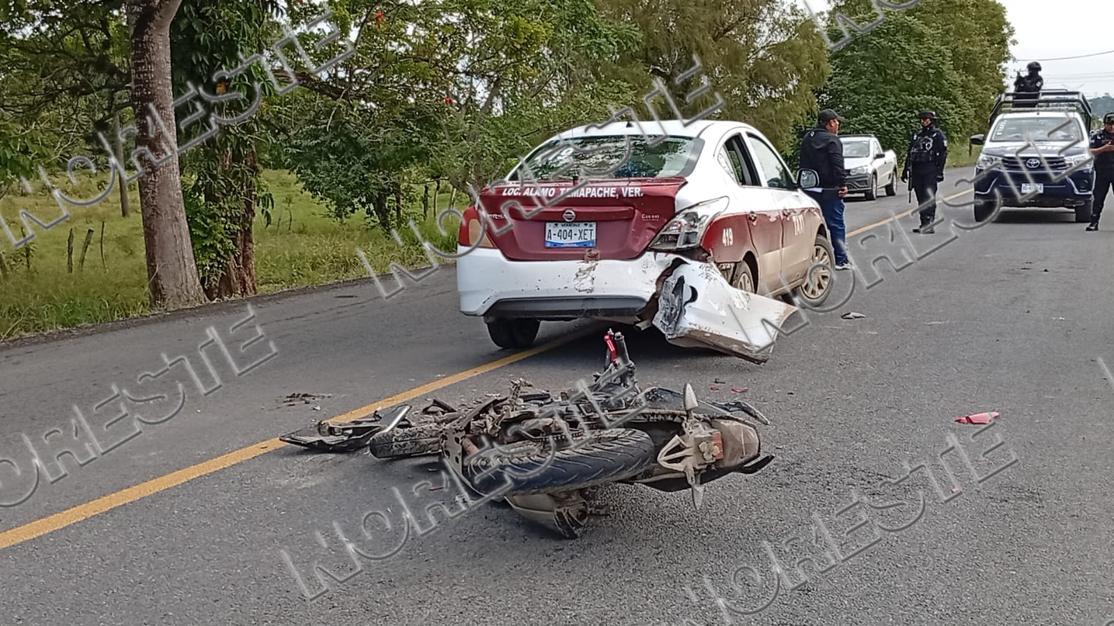 Un motociclista resultó seriamente lesionado luego de impactarse por alcance contra un taxi del municipio de Álamo, cuando circulaba sobre el kilómetro 11 de la carretera Tuxpan–Tampico, a la altura de la comunidad de Buenos Aires.