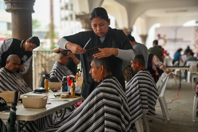 Finalmente, jóvenes del instituto de belleza The Queens realizaron cortes de cabello gratis, por lo que ciudadanos de todas las edades acuden como cada jueves.
