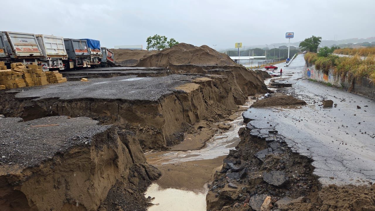 En el camino de acceso al kilómetro 13.5 en la zona norte del puerto de Veracruz se presento un deslave, dejando un taxi atrapado entre el lodo y varios kilos de tierra y arena dispersos por la carpeta asfáltica.