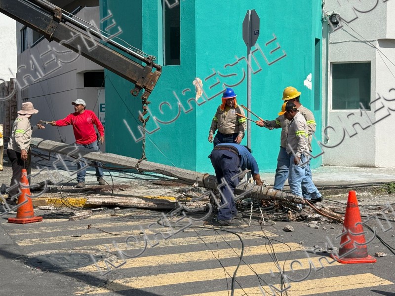 Un autobús de turismo derribó dos postes de cableado en el fraccionamiento Costa Verde en el municipio de Boca del Río, lo que provocó la perdida del servicio de telefonía e internet en el área.