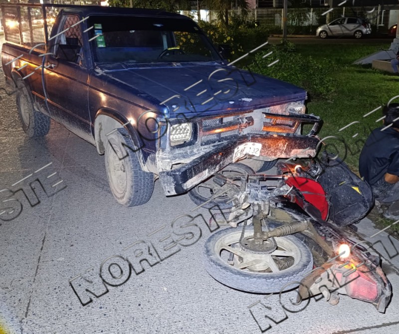 El choque ocurrió enfrente del reloj, cuando el conductor de una camioneta Chevrolet intentó incorporarse a la avenida Ejército Mexicano sin respetar el semáforo en rojo. En ese momento circulaba una motocicleta con preferencia de paso, lo que derivó en un impacto frontal.
