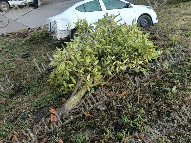 Un automóvil terminó severamente averiado luego de protagonizar una aparatosa salida de camino, tras colisionar contra dos palmas decorativas y un árbol pequeño, quedando finalmente a un costado de la carpeta asfáltica.