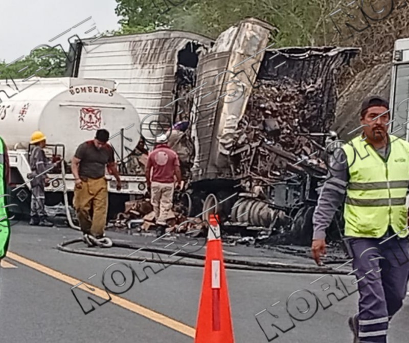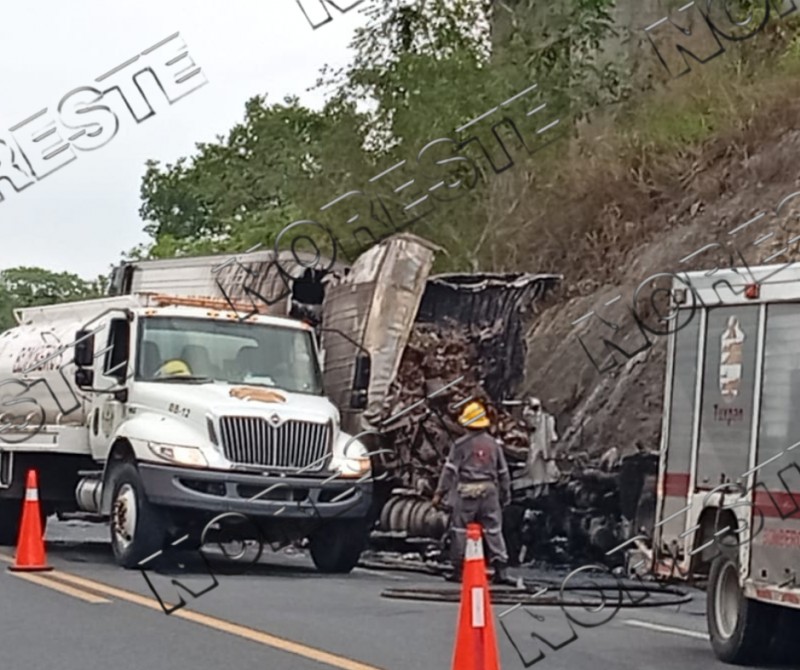 El percance se registró a la altura de la comunidad de Ojite, donde el tractocamión no logró frenar a tiempo y se proyectó contra la parte trasera de la unidad de apoyo carretero. Tras el impacto, el tráiler comenzó a incendiarse, quedando prácticamente consumido junto con su carga.