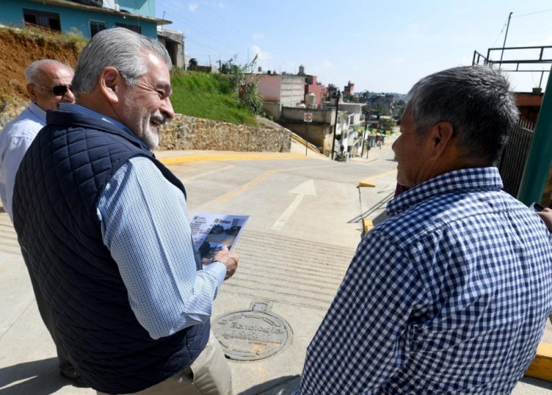 Se trata de una pavimentación de 6 mil 242 metros cuadrados que incluye drenaje sanitario, red de agua, alumbrado público, muros, escalinatas, barandal, guarniciones y banquetas.