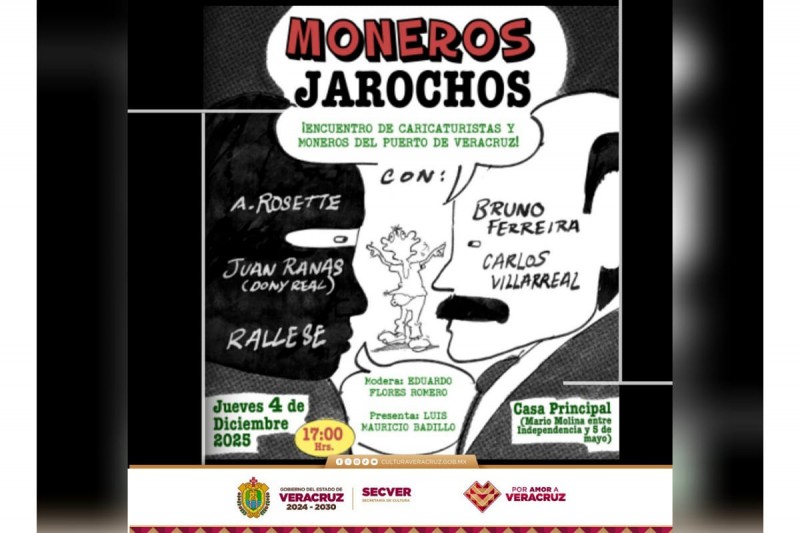 La Secretaría de Cultura de Veracruz (SECVER) invita al Encuentro de Ilustradores, Caricaturistas y Moneros del Puerto de Veracruz, el jueves 4 de diciembre, a las 17:00 horas, en el Centro Cultural Casa Principal, ubicado en el puerto de Veracruz. La entrada es libre.