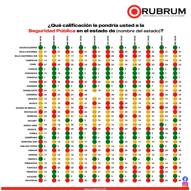 Asimismo, la encuesta de Rubrum destaca avances en seguridad pública, rubro en el que Veracruz ha reforzado operativos coordinados, modernizado cuerpos policiales y fortalecido la presencia institucional en zonas estratégicas, acciones que contribuyen a la percepción de mayor estabilidad en distintas regiones del estado.