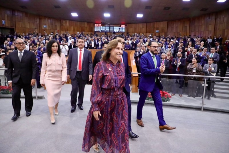 Ante las representantes del Poder Legislativo y Judicial, Naomi Edith Gómez Santos y Rosalba Hernández Hernández, resaltó la atención a mil 987 expresiones sociales, los convenios de coordinación en seguridad con Puebla, Oaxaca, Chiapas y Tabasco, así como la reducción de la deuda pública de 119 mil 388 a 69 mil 645 millones de pesos, equivalente al 42%.