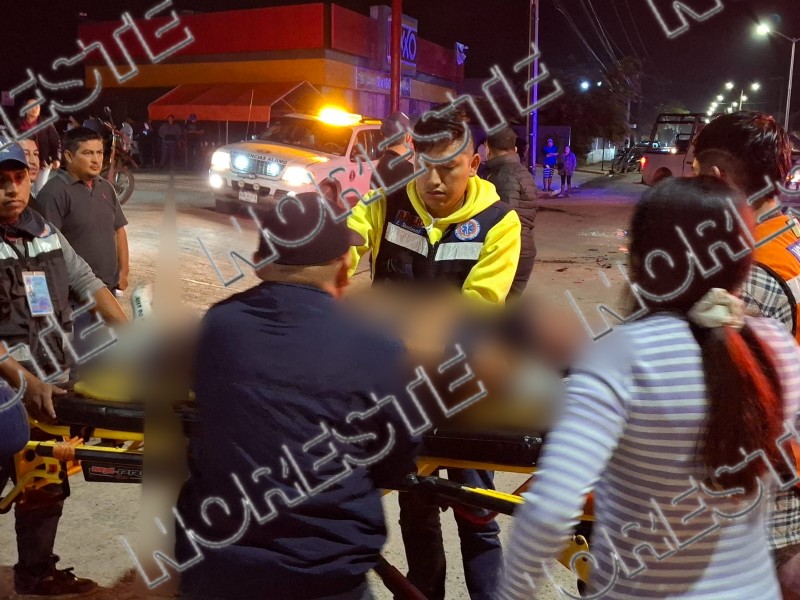 Según información recabada, dos jóvenes que viajaban en una motocicleta color rojo se desplazaban con dirección al norte cuando, al llegar frente a una gasolinera, se encontraron de frente con un vehículo compacto que intentaba incorporarse a otra vialidad.