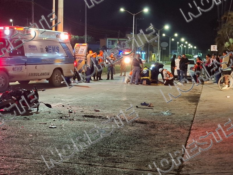 Una fuerte colisión entre una motocicleta y un automóvil dejó a tres personas gravemente heridas la noche de este viernes en el bulevar Garizurieta, justo frente a la zona comercial conocida como las jugueras.