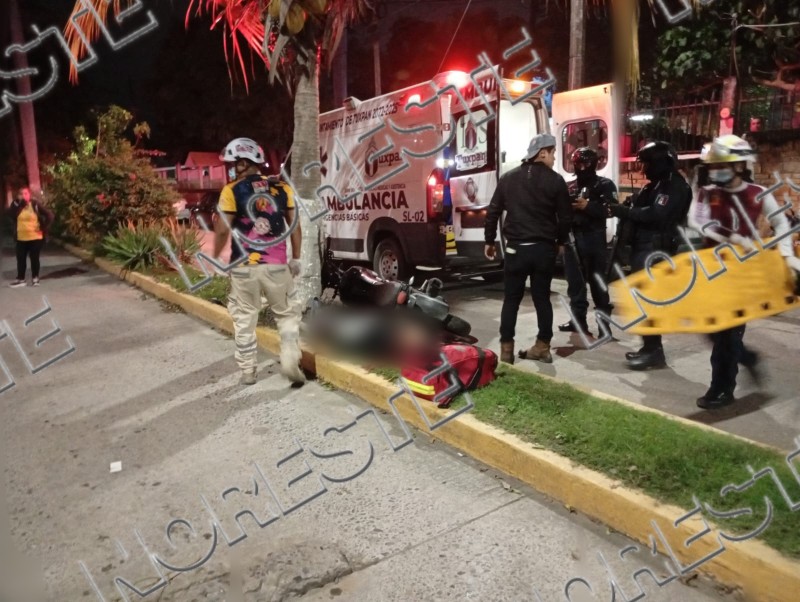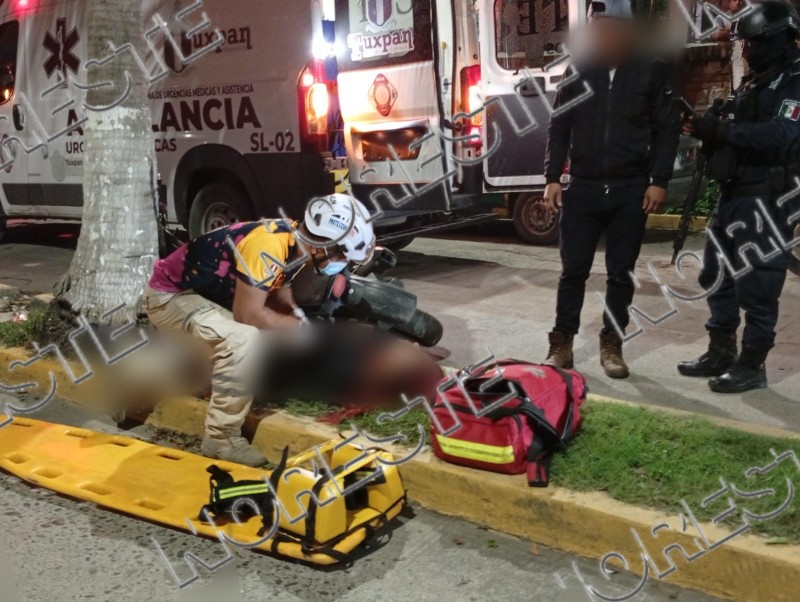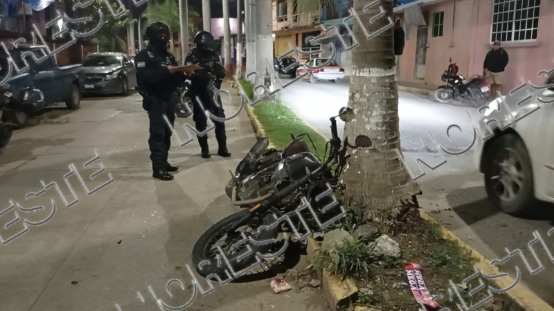 Una mujer terminó lesionada luego de que una motocicleta se estrellara contra una palmera la noche de este viernes en calles de la colonia Infonavit Tenechaco.